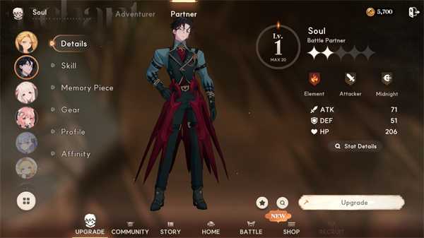 8、点击下方的UPGRADE后,再点击Partner可以对你的伙伴进行升级。